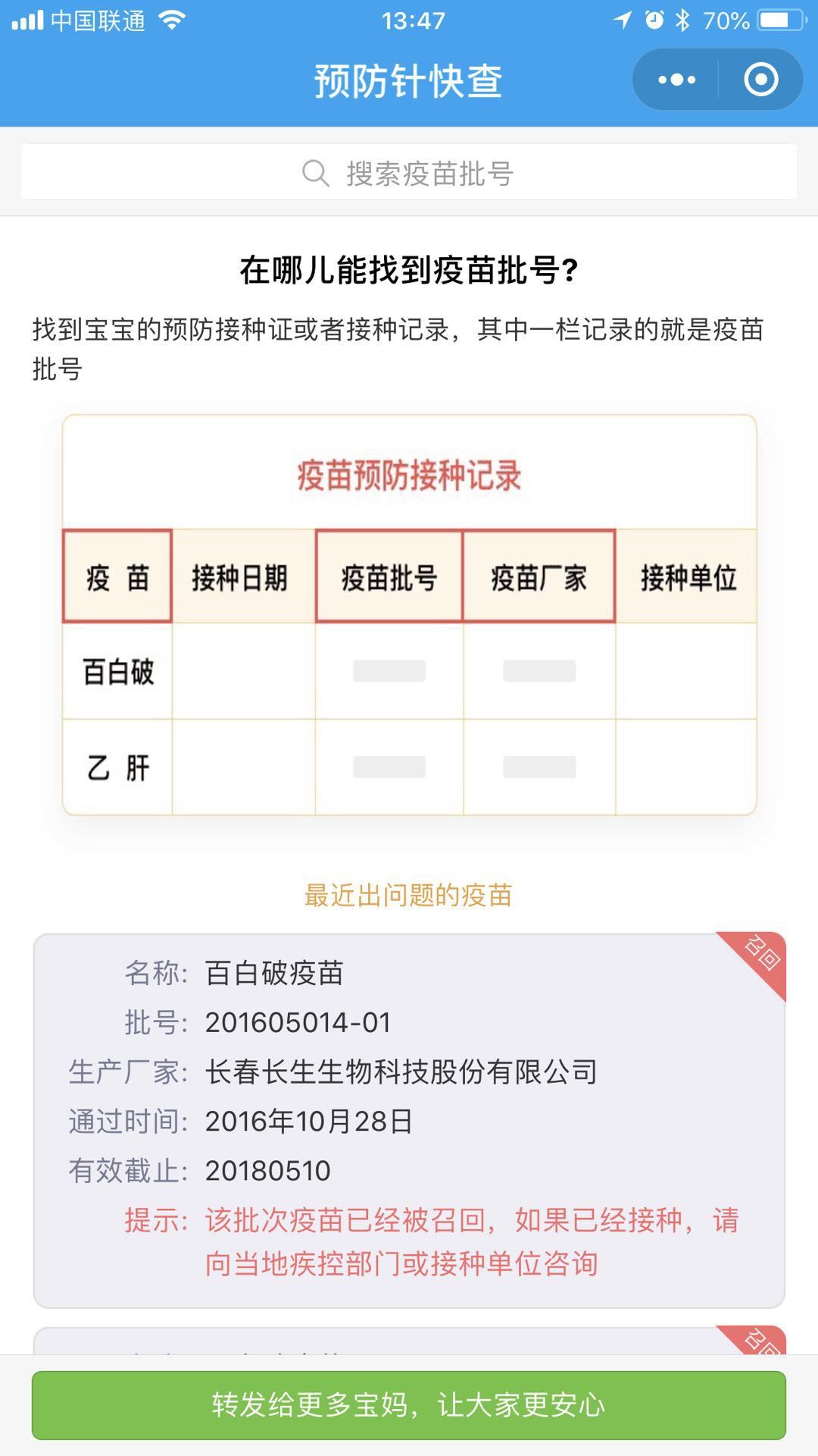 输入“疫苗批号”即可快速查询宝宝注射的疫苗是否合格!快速排查问题疫苗,妈妈更安心!
