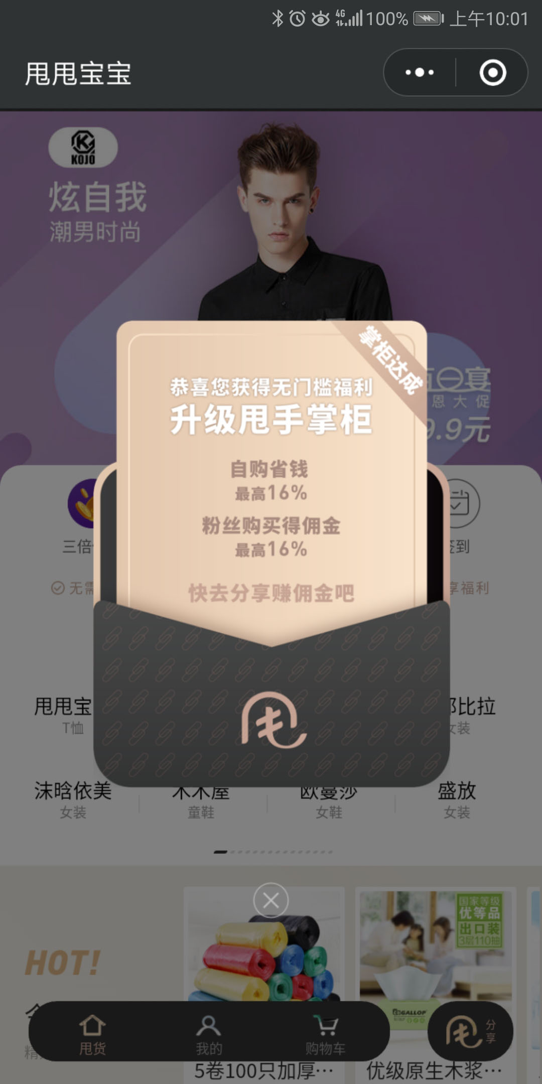 甩甩宝宝是腾讯领投的一款品牌特卖小程序,由各大品牌厂家或供应链直接供货,采用最新的s2b2c模式(供应商to平台to顾客)依托微信5亿+活跃用户进行品牌轮番特卖!自己购省钱,分享给别人而产生订单可以赚佣金;