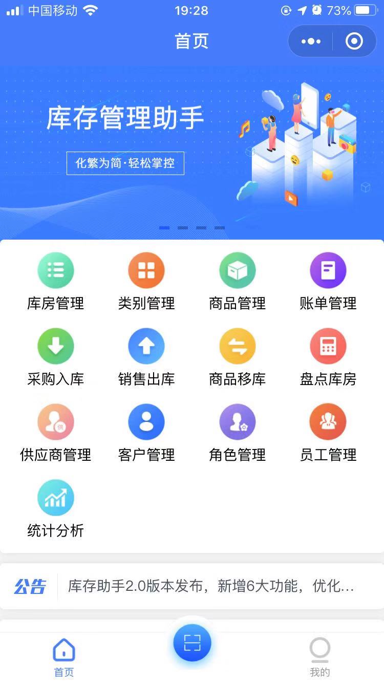 化繁为简的库存管理助手小程序专为中小型企业库存管理而设计制作,提供商品出入库、移库、盘点管理,多库房管理,类别管理,支持员工协同管理,角色权限分配,账单管理,统计分析,操作层次分明,功能使用一目了然,界面设计简单使用方便,查询功能强大,功能精简,操作简单灵活,不用学习即可上手,使得库存可随时随地,轻松管理。