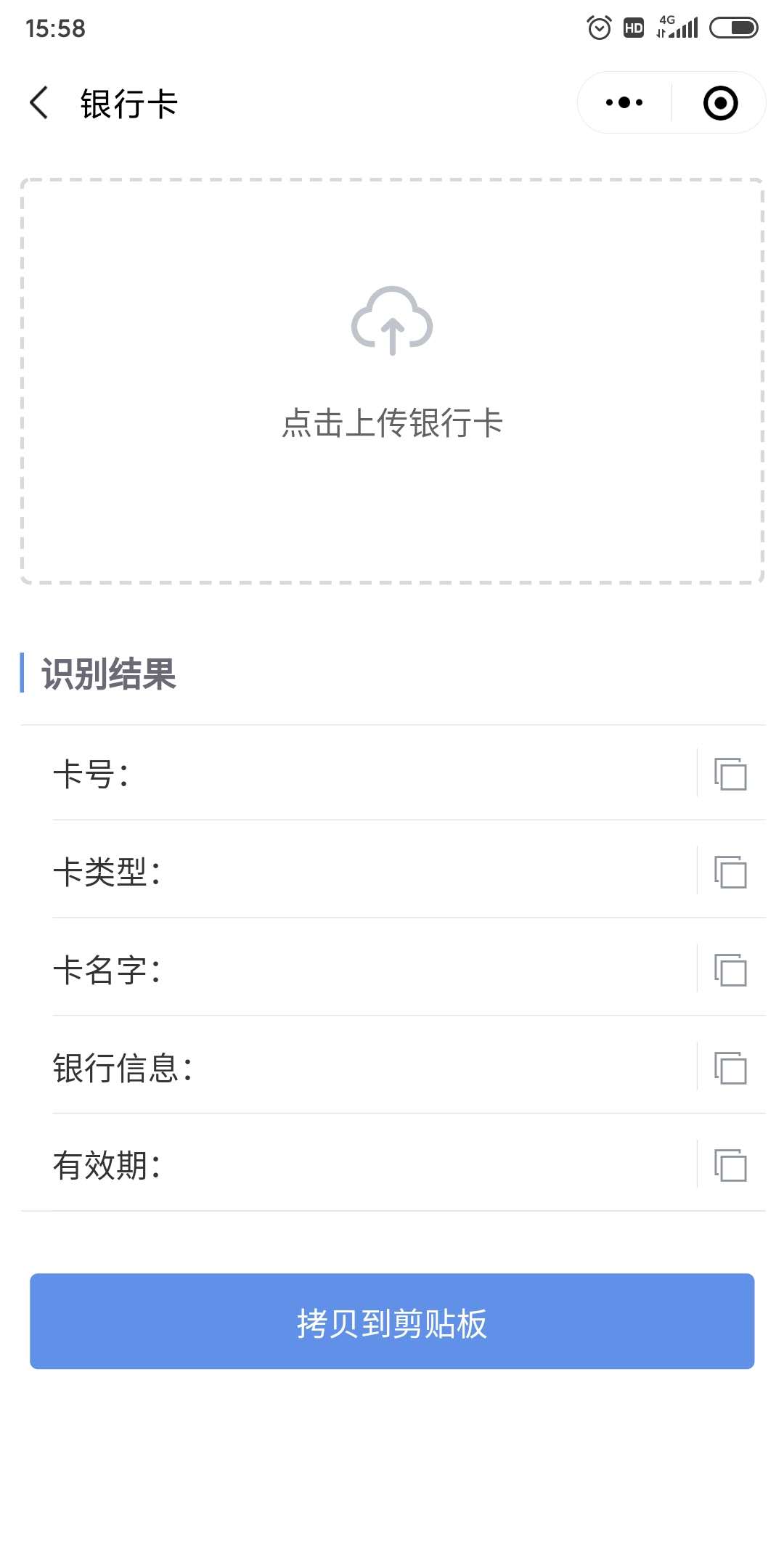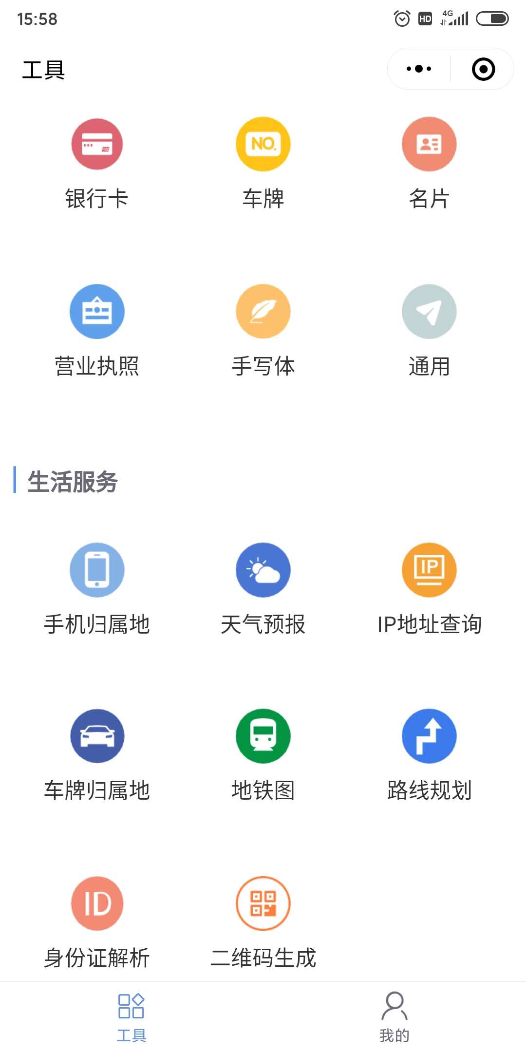一款工具类小程序,提供身份证、银行卡等各类证件识别和手机归属地、天气等一些实用的生活服务功能。