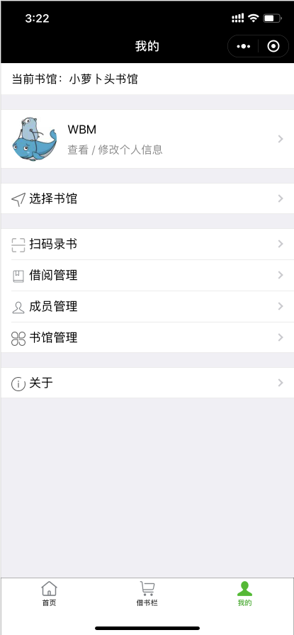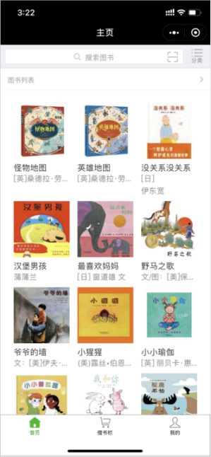 童书绘本借阅管理 打造简洁便利的绘本借阅工具,成为亲子阅读,儿童教育,童书借阅,思维成长的好帮手。做专注于绘本,儿童书籍,亲子图书的借阅工具。 小程序主要功能包含: 1,创建书馆,成为书馆管理员。 2,选择书馆,可自由切换不同书馆。 3,成员管理,为当前书馆邀请成员。查看管理成员借阅记录。 4,扫码录书,支持扫描ISBN录入书籍。 5,扫码借书,方面书馆成员扫码登记借书。 6,其他功能正在完善。
