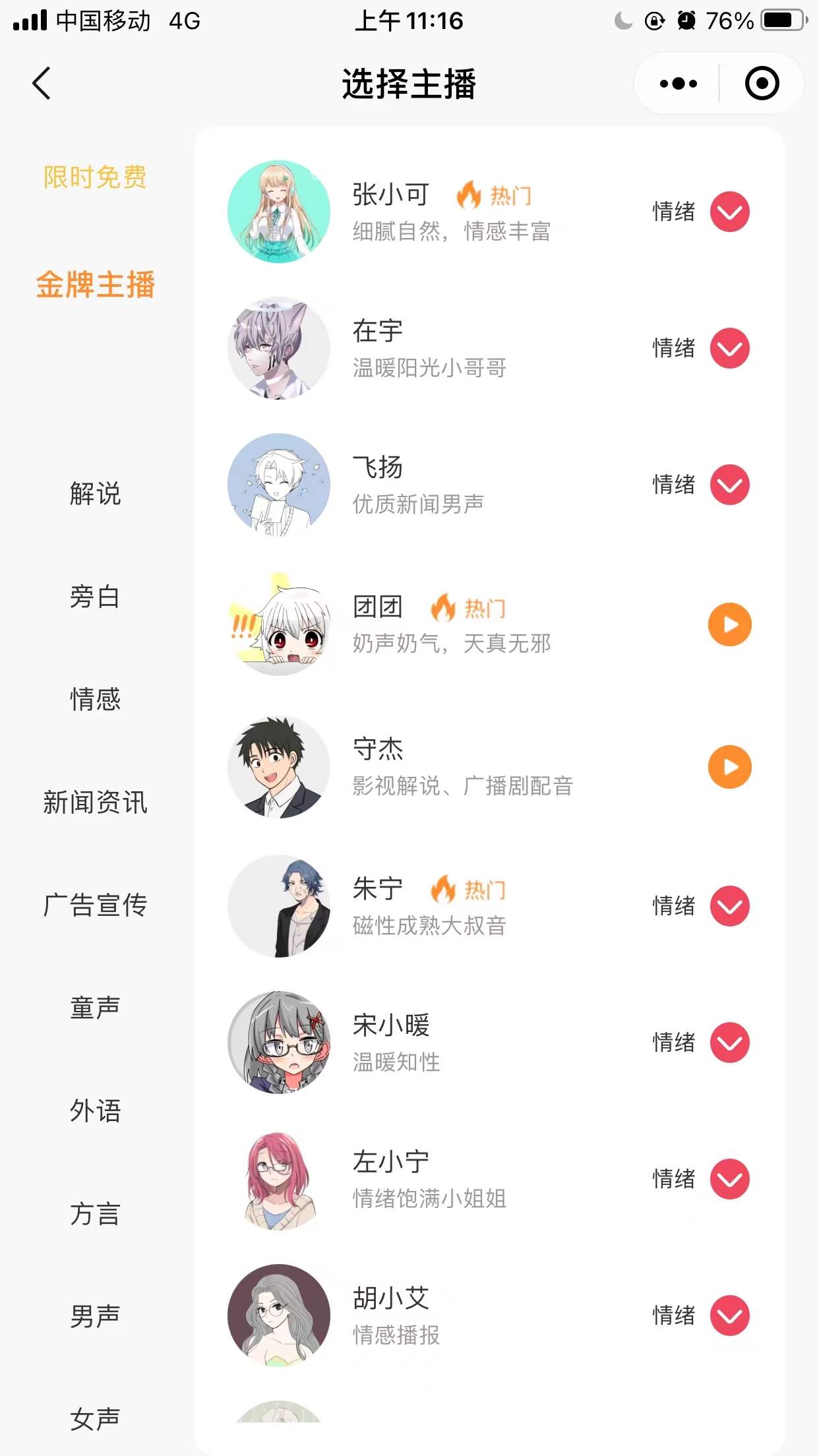 是一款智能语音合成的配音软件,支持文字转语音,智能合成,可以自行编辑声音文本内容,导出mp3、MP4文件,有样音模板、文案范例和背景音库
