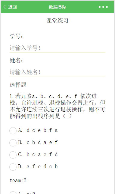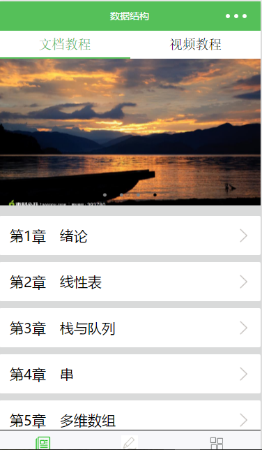小程名称:《数据结构》小程序。作用:用于便捷式学习《数据结构》这门课程。思路:基于英语学习的App为灵感,想到也可以将《数据结构》这门课程也做成App 的形式,实现手机的网上学习,网上mooc,随时随地的学习。做法:为了解决安装传统App,而且很占手机内存的麻烦。我们采用了微信小程序的新技术来实现我们所要的便捷式学习功能。亮点:1.只要像关注微信公众号那样关注我们的微信小程序就好了,不需要安装。