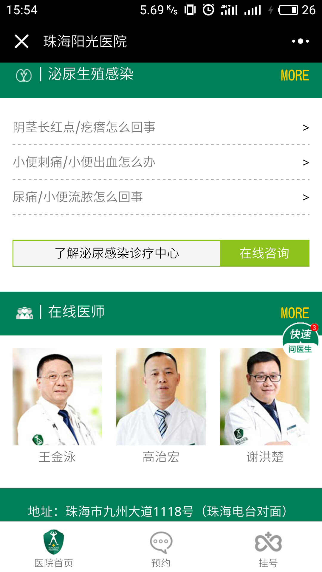 为网友疾病咨询及就医挂号指引服务,珠海阳光医院,专业男科医院。