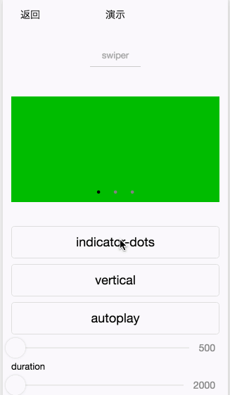 <button bindtap="changeIndicatorDots"> indicator-dots </button>