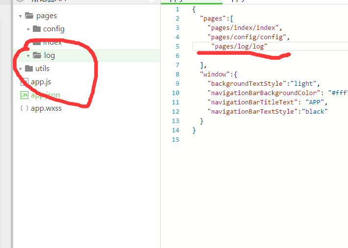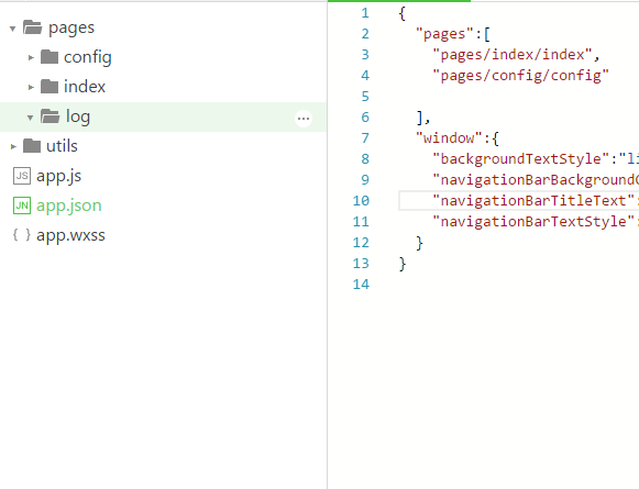 话不多说看图第一步创建目录,我打算创建一个log目录log目录已经创建,但不着急创建子文件,回到根目录的app.json里面的pages添加路径大家看到,log子文件还没创建,pages也写好了,但是-我好没Ctrl+s保存,保存后会怎么样尼,请看不错如你所看到那样,一保存就会自己创建好同名的四个文件,是不是很方便