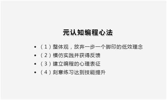 那么正确的打开方式是什么呢?答案就是元认知编程学习法,来看一下Michael老师的独创速成心法: