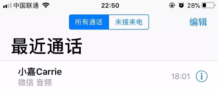 并且,手机通话记录中,竟然也会留有记录,还显示“微信 音频”的字样,显示的通话人还是微信好友的昵称。这难道是马化腾和库克亲切交谈后的一大突破?