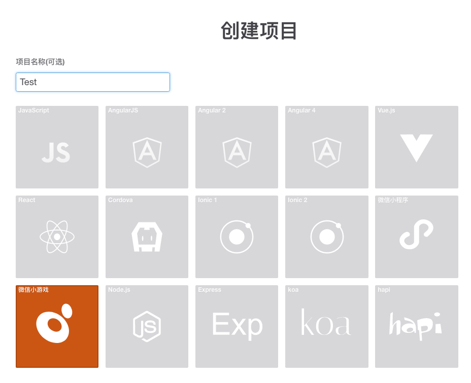 创建项目的时候选择左下角的微信小游戏图标。