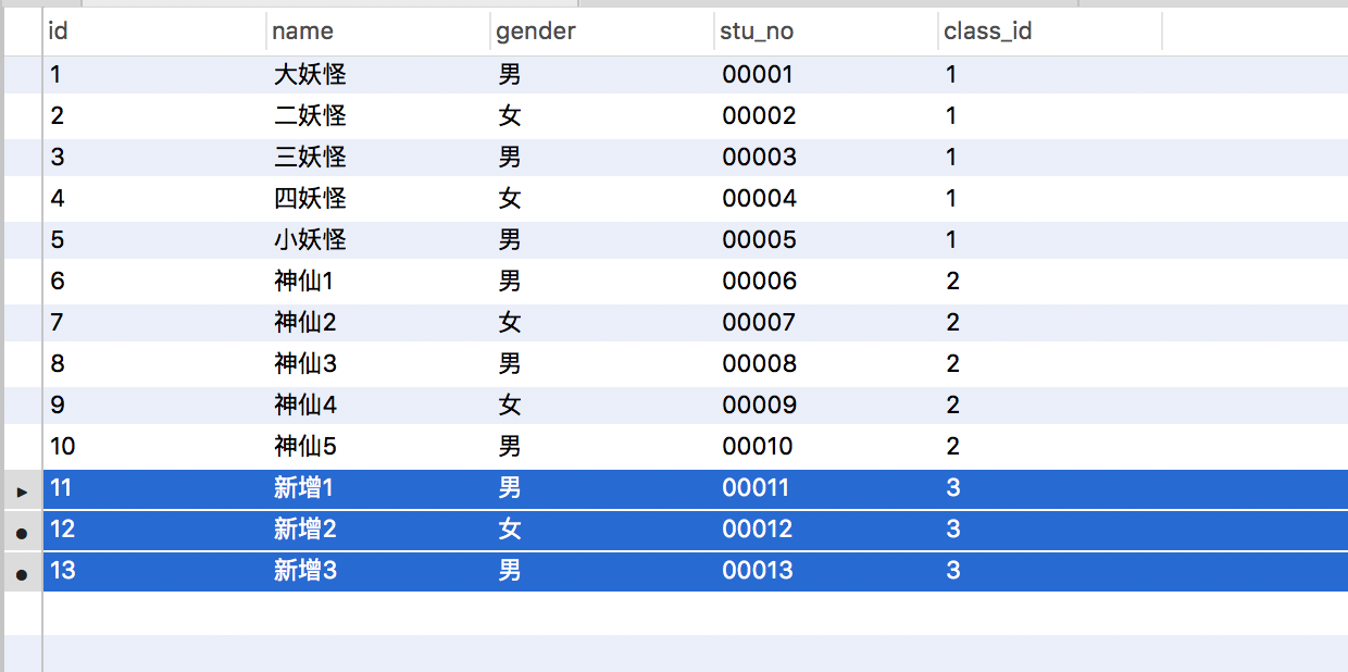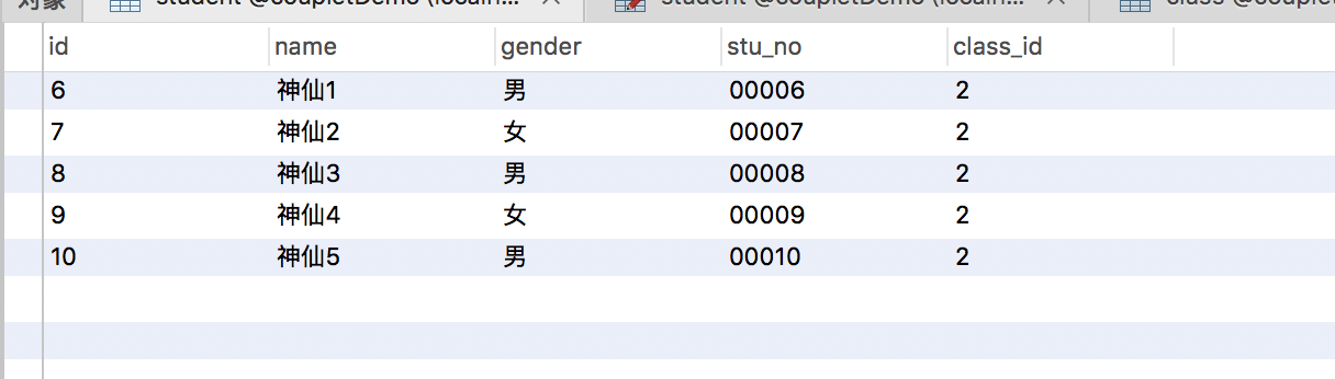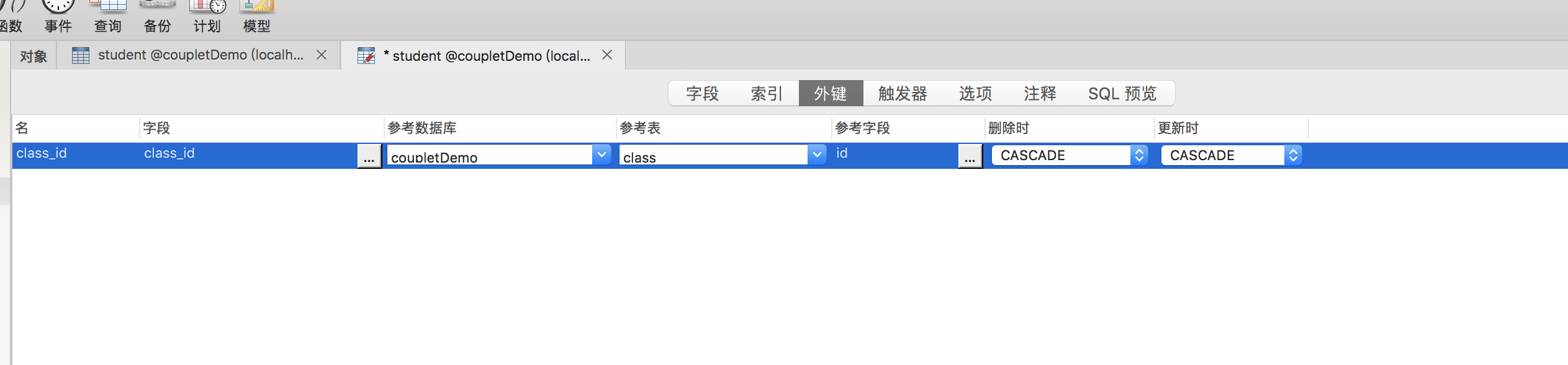 这时候刷新student表,你会发现,student表中的class_id为1的数据一起被删除了: