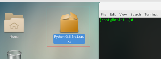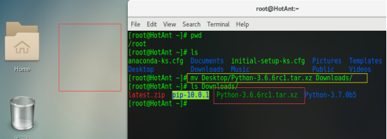 注意,左边的Python源码包没了,现在它被移动到Downloads目录下了,注意红色框框