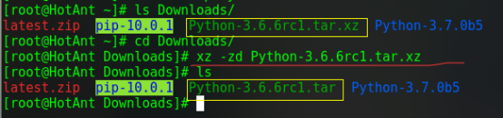 这里注意下,下载下来的压缩包是xz格式的要安装xz这个工具,这里实在我的centos7虚拟机上由于我的安装过了,这里我只是简单的演示下,截图如下: