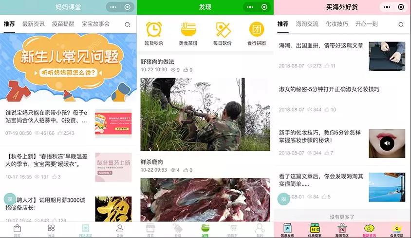 不仅如此,小程序结合微信公众号还有更多的玩法,我们都知道小程序和微信公众号可以关联。在小程序上大家还可以发布文章、视频、这要比再去公众号阅读来的灵活方便。这里说三个案例:母子e站、鲜优优、买海外好货。