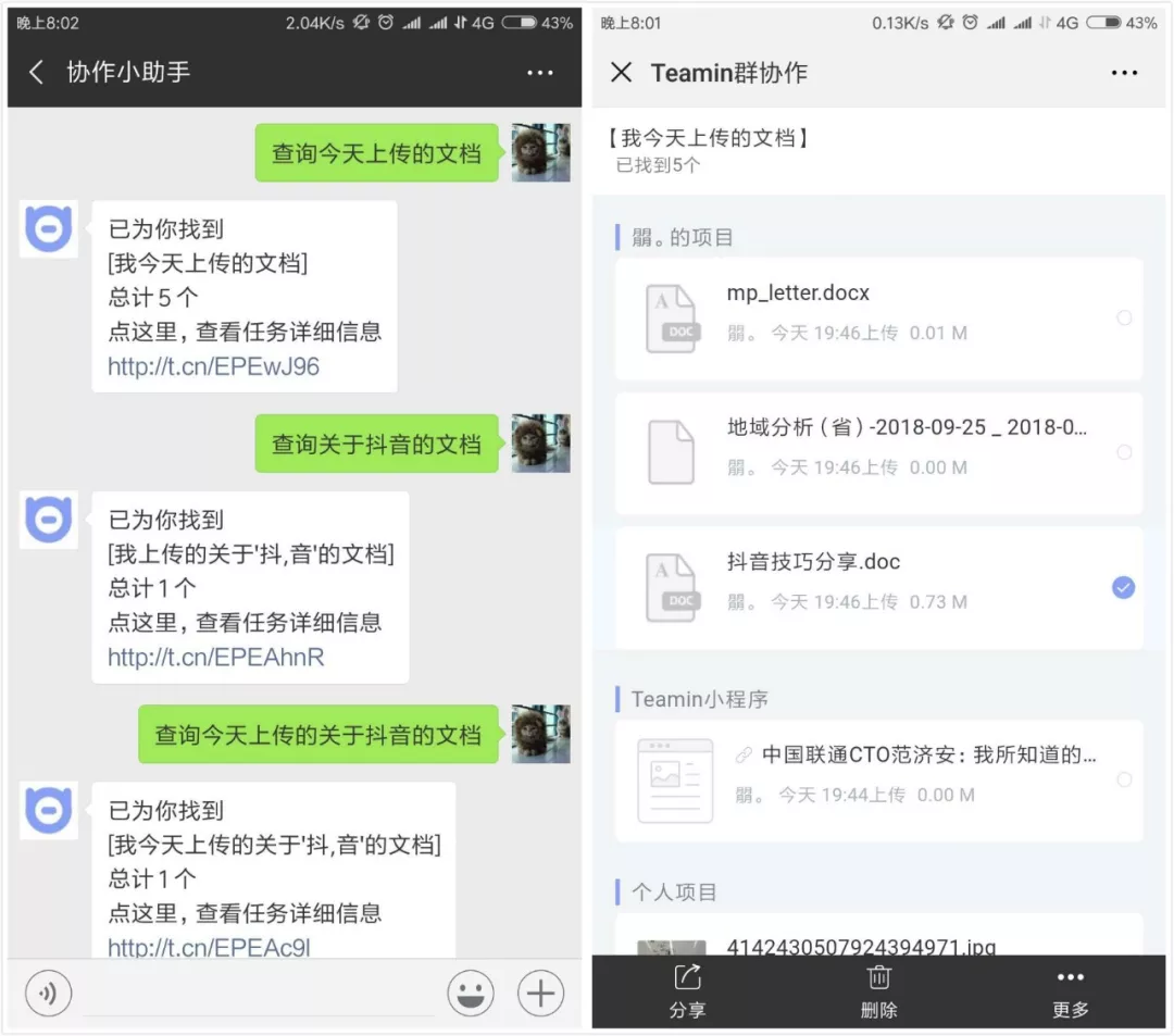 在文件管理中,你可以通过微信小助手直接进行查询,还能直接将查询的文件发送给他人进行多人协作。