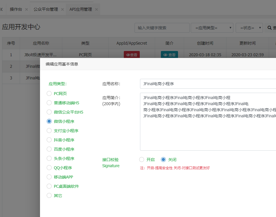 2、使用JBolt平台与微信小程序极速开发JS SDK,帮你快速开发微信小程序接口