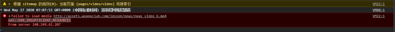 在新闻客户端项目里面,视频界面,功能正常,但是控制台会出这个错误Failed to load medianet::ERR_INSUFFICIENT_RESOURCESFrom server 140.249.61.207
