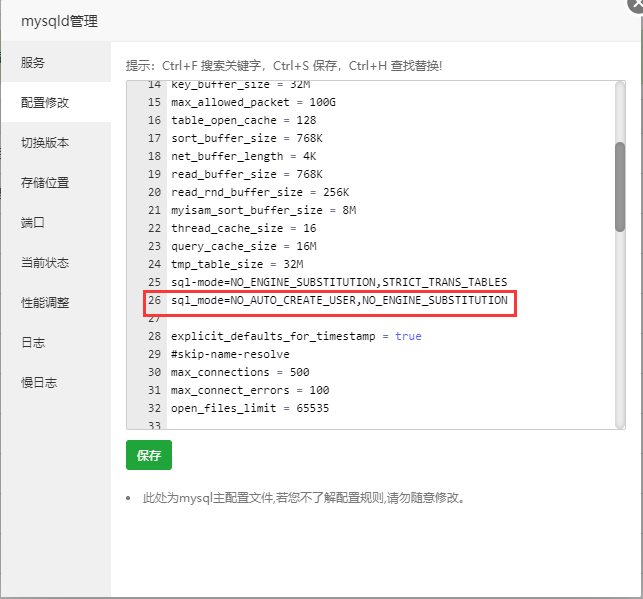 sql_mode=NO_AUTO_CREATE_USER,NO_ENGINE_SUBSTITUTION