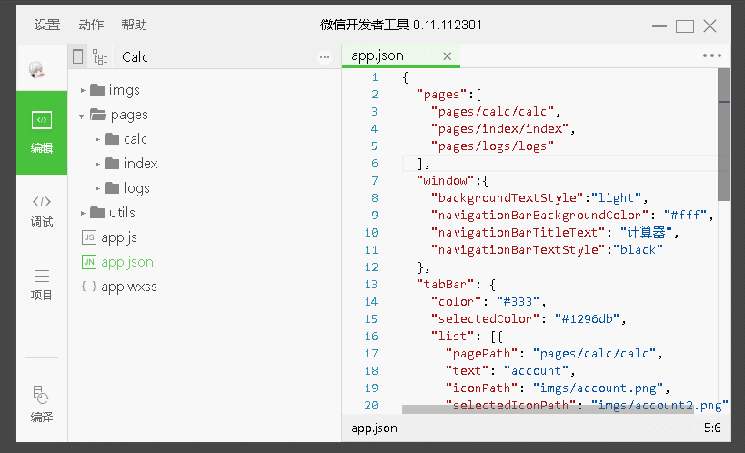 向 app.json 的 pages 中注册一个新的页面路径,然后 Ctrl + S,开发工具将自动在指定路径下创建 4 个文件,下面来见证这一神奇的时刻吧!