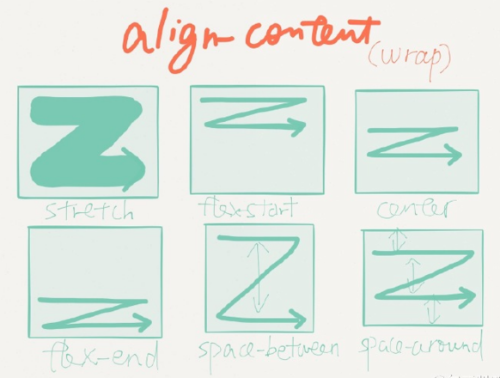 align-content属性定义了多根轴线的对齐方式。如果项目只有一根轴线,该属性不起作用.