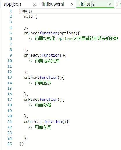在项目中增加一个页面,如下:wxml文件如下:js文件如下:json与wxss文件都是空白