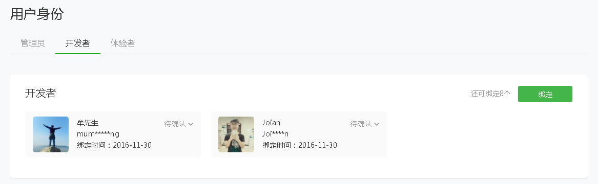 已认证的小程序可以绑定不多于20个开发者。未认证的小程序可以绑定不多于10个开发者。
