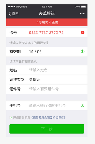 在出现异常时予以用户必要的状态提示,并告知解决方案,使其有路可退。在表单页面中尤其是表单项较多的页面中,应明确指出出错项目,以便用户修改。