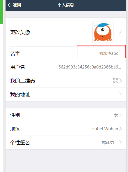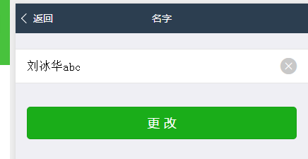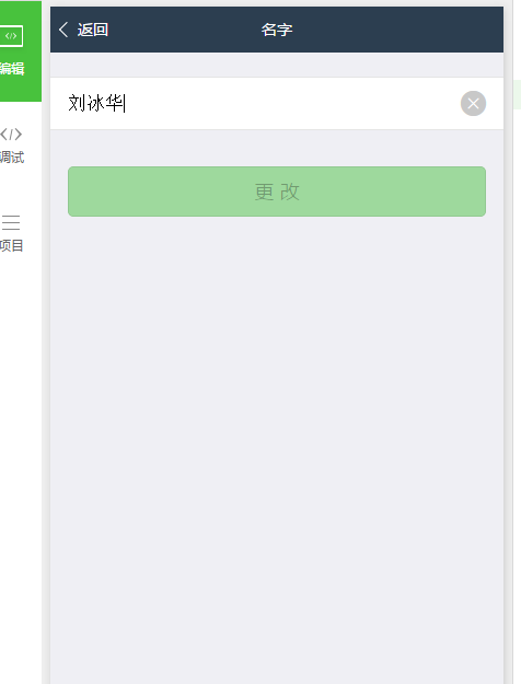 2.更改按钮,会根据输入内容判断是否能够点击,如果名字未更改或内容为空时不能更改。当内容改变时,可以点击,且 点击后自动跳回上一页,保存到服务器数据库,更新本地缓存