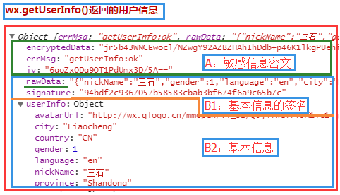 1:小程序调用wx.getUserInfo()接口,得到“密文encryptedData”,“初始向量iv“等用户信息
