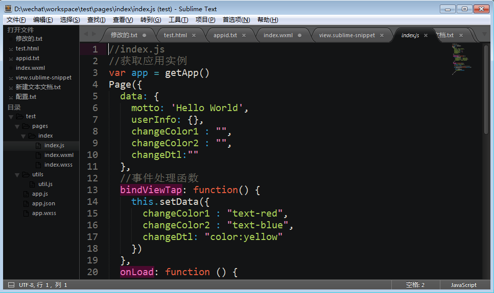 创建小程序项目,直接将整个项目文件夹拖入sublime,即可在sublime里面进行编辑,而官方的IDE就只是单纯用来调试用的!!!