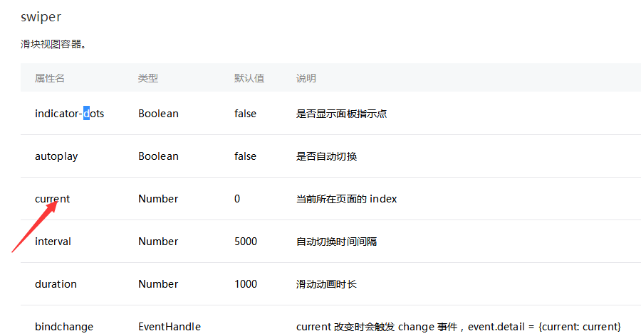 <swiper indicator-dots="{{indicatorDots}}" current="{{index}}" autoplay="{{autoplay}}"