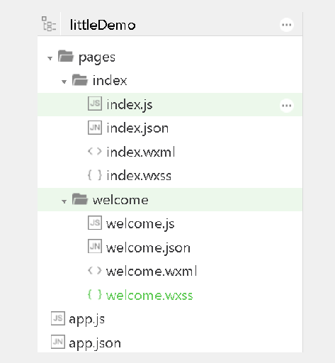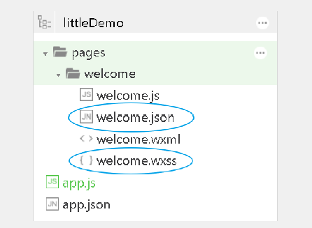 注意:welcome页面的 wxss、json 文件是非必须的,但是新版本的开发工具,如果你在 app.json 的 pages 中配置了 welcome 页面的话,wxss、json 文件即使不存在,开发工具也会自动创建 wxss、json 文件以保证 页面的4个文件同时存在。