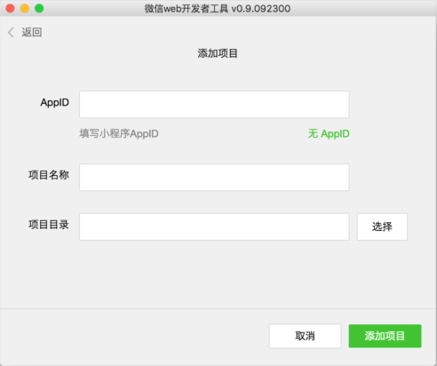 2>填入 AppID ,项目名称,选择存储目录,点击“新建项目”就可以了