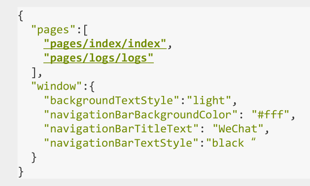 6>app.json对整个小程序的全局配置。小程序中的每一个页面的【路径+页面名】都需要写在 app.json 的pages中,且pages中的第一个页面是小程序的首页。注意该文件不可添加任何注释。