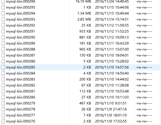 首先,我理解错了binlog的意思,并不是拿着最后的binlog就可以按时间恢复所有的东西,binlog是MySQL的操作记录,它里面储存了MySQL下所有的crud,因此,要恢复哪些天丢失的数据就要把这些天的东西全部找出来像这样,按照binlog的创建时间从服务器上拿
