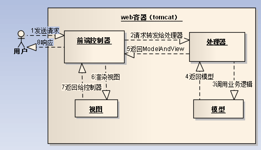 图中的前端控制器即为 DispatcherServlet ,在web.xml中配置