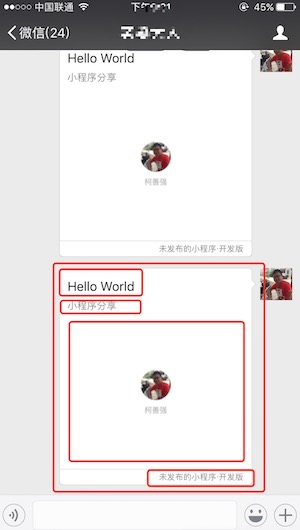 目前只支持分享给好友和群,不支持分享到朋友圈;可以分享指定页面,不一定是当前页面。从上图中,可以看出分享出去的小程序占很大一部分空间,包括分享标题,分享描述,分享页面截图以及小程序应用发布状态。