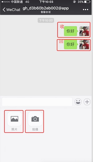 目前支持文本、图片两种消息类型