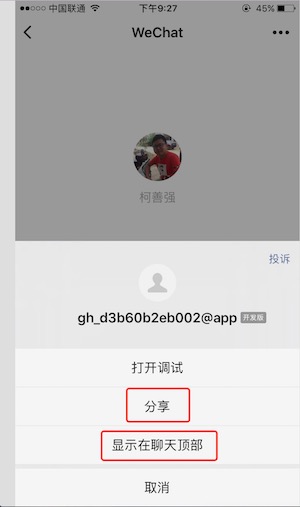 今天小程序来了一次大更新,晚上忍不住体验一下大家期待已久的新功能:分享 置顶 扫码 客服消息。