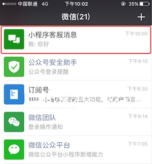 小程序管理员微信就可以收到一条用户发起的咨询消息,上图红色框内。