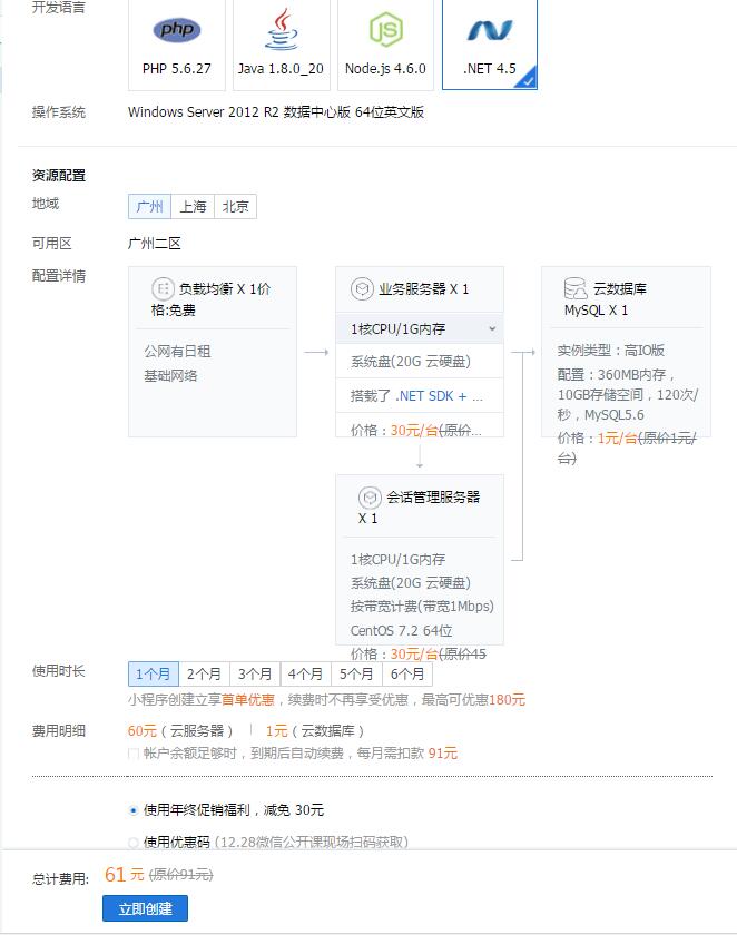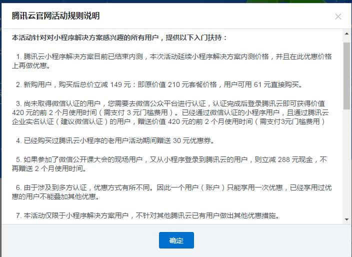 腾讯云今天推出小程序新的解决方案(也就是营销活动啦),标题是3元,实测61大洋/月。