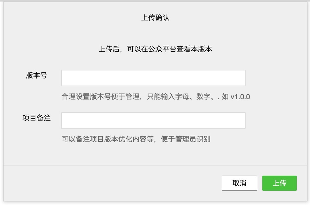 点击上传后,release 代码会上传到小程序后台的「开发版本」一项中。 需要注意的是,「开发版本」中只能有一个版本的代码,新的上传操作会替代之前已存储在「开发版本」中的代码。