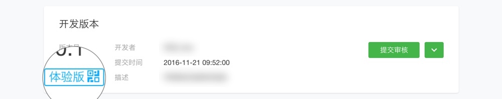 设置完毕后,分享「开发版本」一项左侧的「体验版」按钮的二维码给体验者。